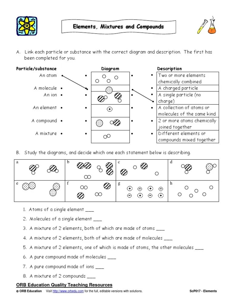 Classify each of the following as elements (e), compounds (c) or mixtures (m). Which are numbers that are found on the lower. Copies of attached worksheet "an atom of my element" . A mixture (is/is not) a chemical combining of substances. Topic investigating atoms, elements, molecules, and compounds.